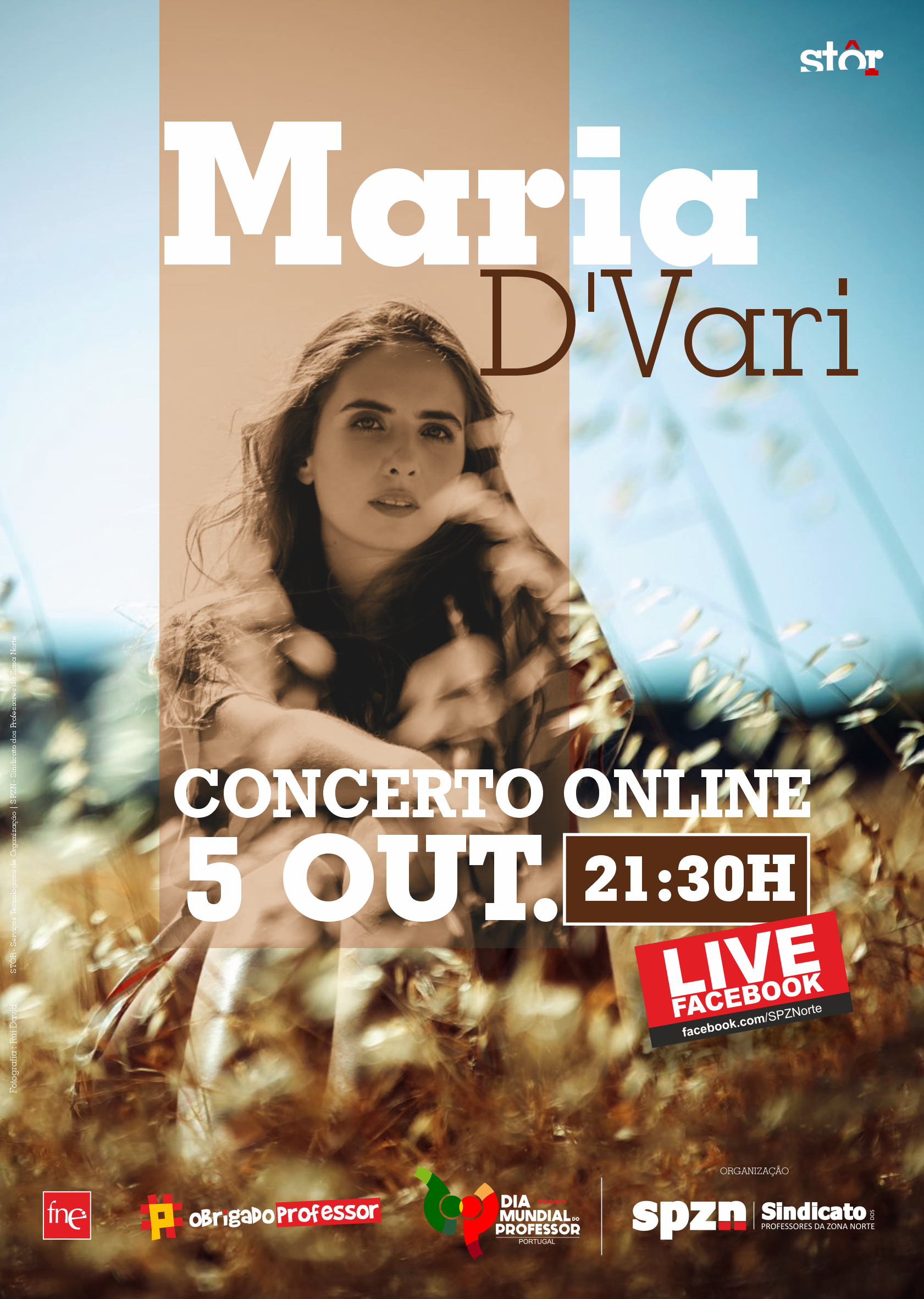No âmbito das comemorações do Dia Mundial do Professor, o Sindicato dos Professores da Zona Norte, realiza um concerto online, que terá lugar pelas 21:30 horas do dia 5 de outubro de 2020, através da página de facebook do SPZN: www.facebook.com/SPZNorte