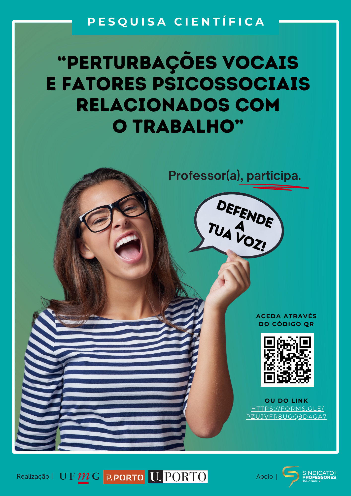 Com a aproximação do Dia Mundial da Voz, celebrado a 16 de abril, e visto que as perturbações vocais são uma das problemáticas da carreira docente – que tem vindo a ser denunciada pelo nosso sindicato -, o SPZN aliou-se a este projeto, cuja pesquisa tem por tema “Perturbações da voz e fatores psicossociais relacionados com o trabalho”.
