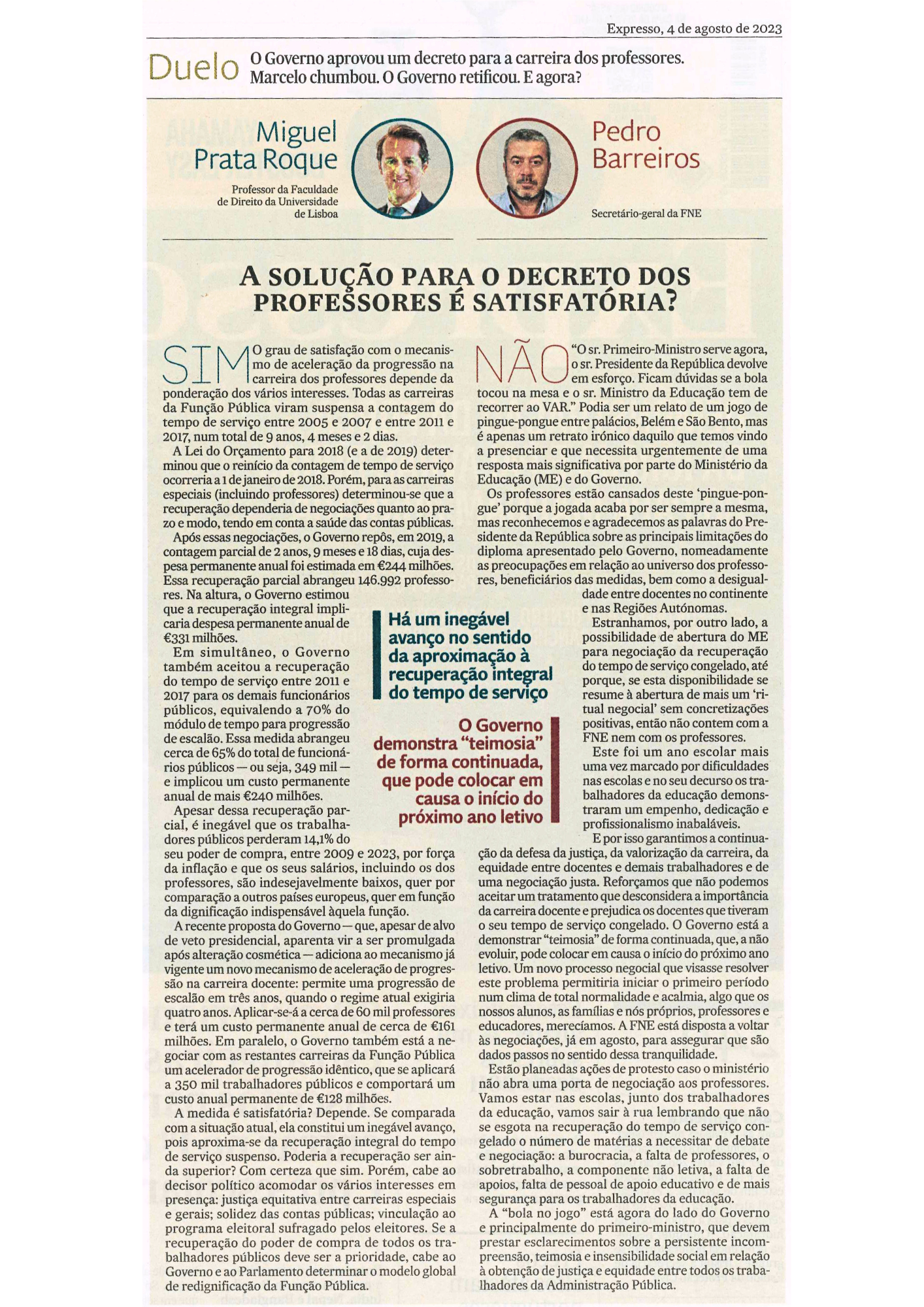 Expresso | A solução para o decreto dos professores é satisfatória? Opinião de Pedro Barreiros
