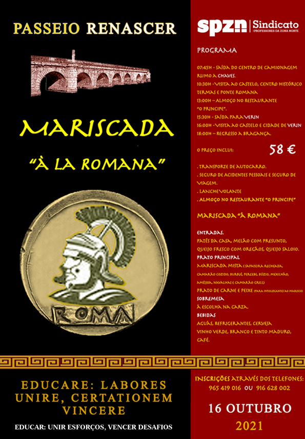 Assim, no próximo dia 16 de outubro de 2021 iremos visitar a bela cidade de Chaves, as suas Termas, o Castelo e Centro Histórico e a Ponte Romana. De seguida, e após temperadas as forças com uma “Mariscada À la Romana”, seguiremos até à localidade raiana e espanhola de Verin. Visitaremos o seu Castelo medieval e o “Casco Antiguo”. No regresso à capital nordestina teremos uma merenda volante.
